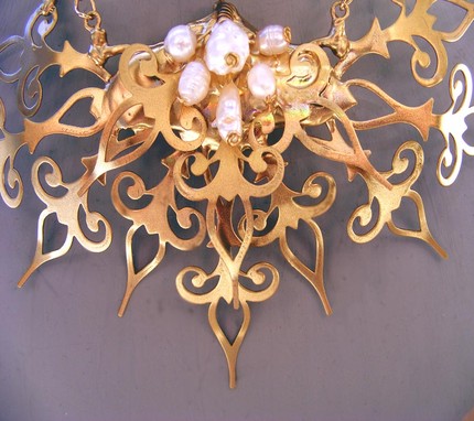 My mom and I are RAVENOUS collectors of vintage costume jewelry. Are tastes do diverge though. She collects mostly Miriam Haskell and Czech glass, while I go for the Eisenberg, Weiss, and Regency look. As I was flipping through one of her books about Haskell a few months back. Suddenly, an idea for a piece of jewelry I wanted to make floated through my mind. It took a lot of working and re-working. A couple of failures then finally success. And I happy to say it’s finally finished. Showing it too my mom, she exclaimed to my delight, “MIRIAM WOULD LOVE IT.”
